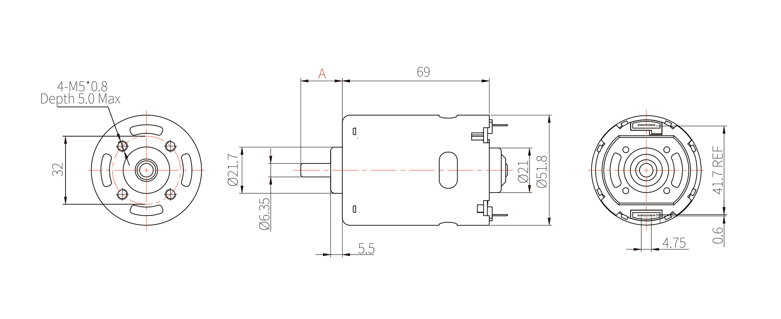 轴径:φ 6.35 mm