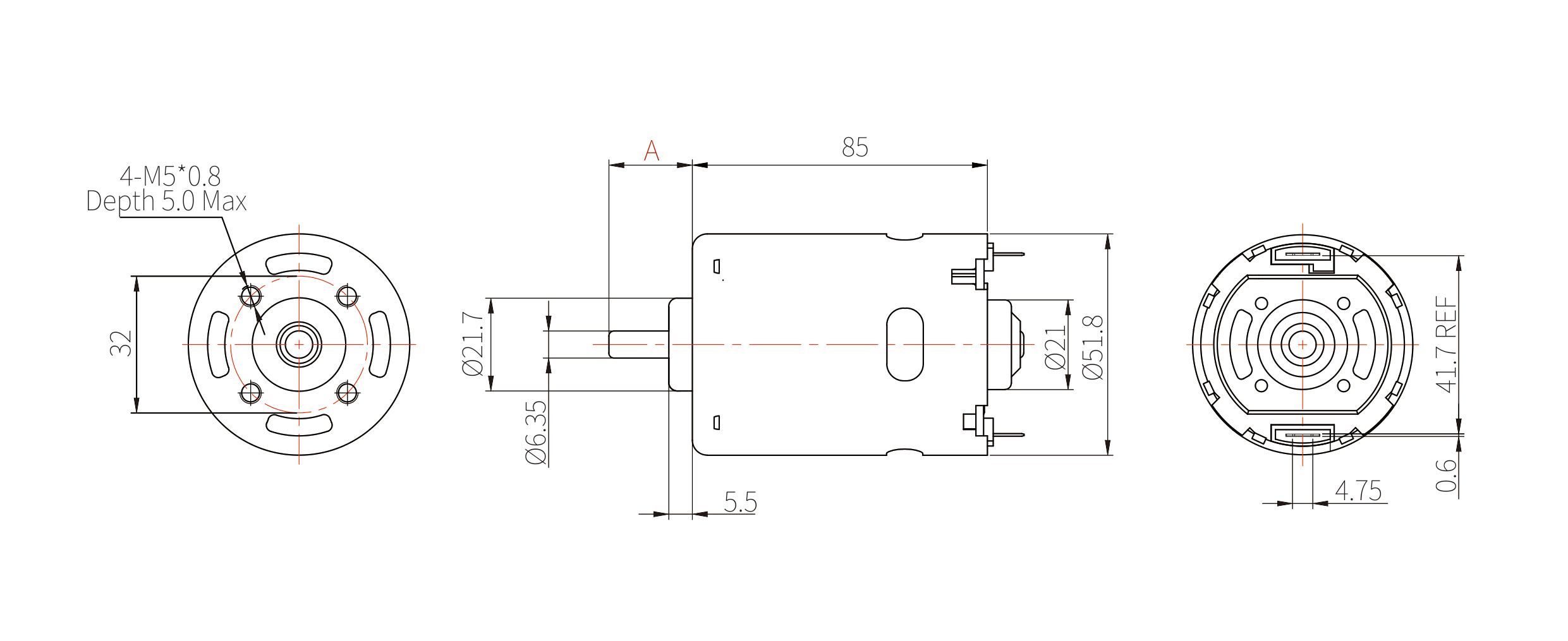 轴径:φ 6.35 mm